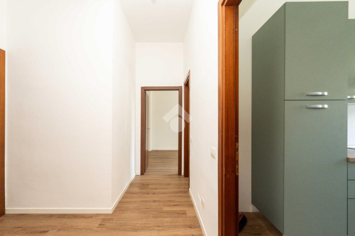 L’appartamento si apre su un comodo ingresso con disimpegno che conduce alla zona living, accogliente e luminosa, e alla cucina separata, funzionale e ben distribuita.