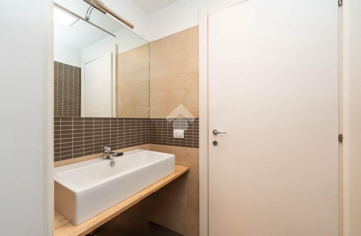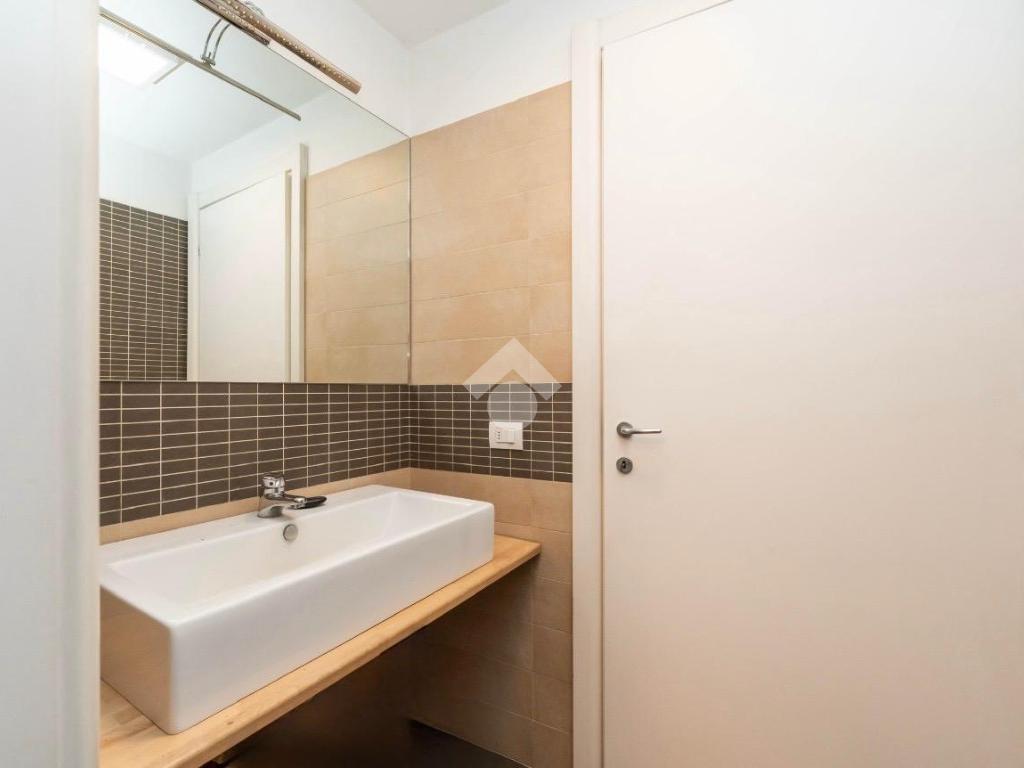 L’ingresso si apre su una luminosa zona living con cucina a vista, un ambiente accogliente e ben organizzato, perfetto per vivere la quotidianità e accogliere ospiti in totale comfort. A servizio del piano troviamo un bagno con antibagno, curato nei dettagli e pensato per garantire praticità e riservatezza.